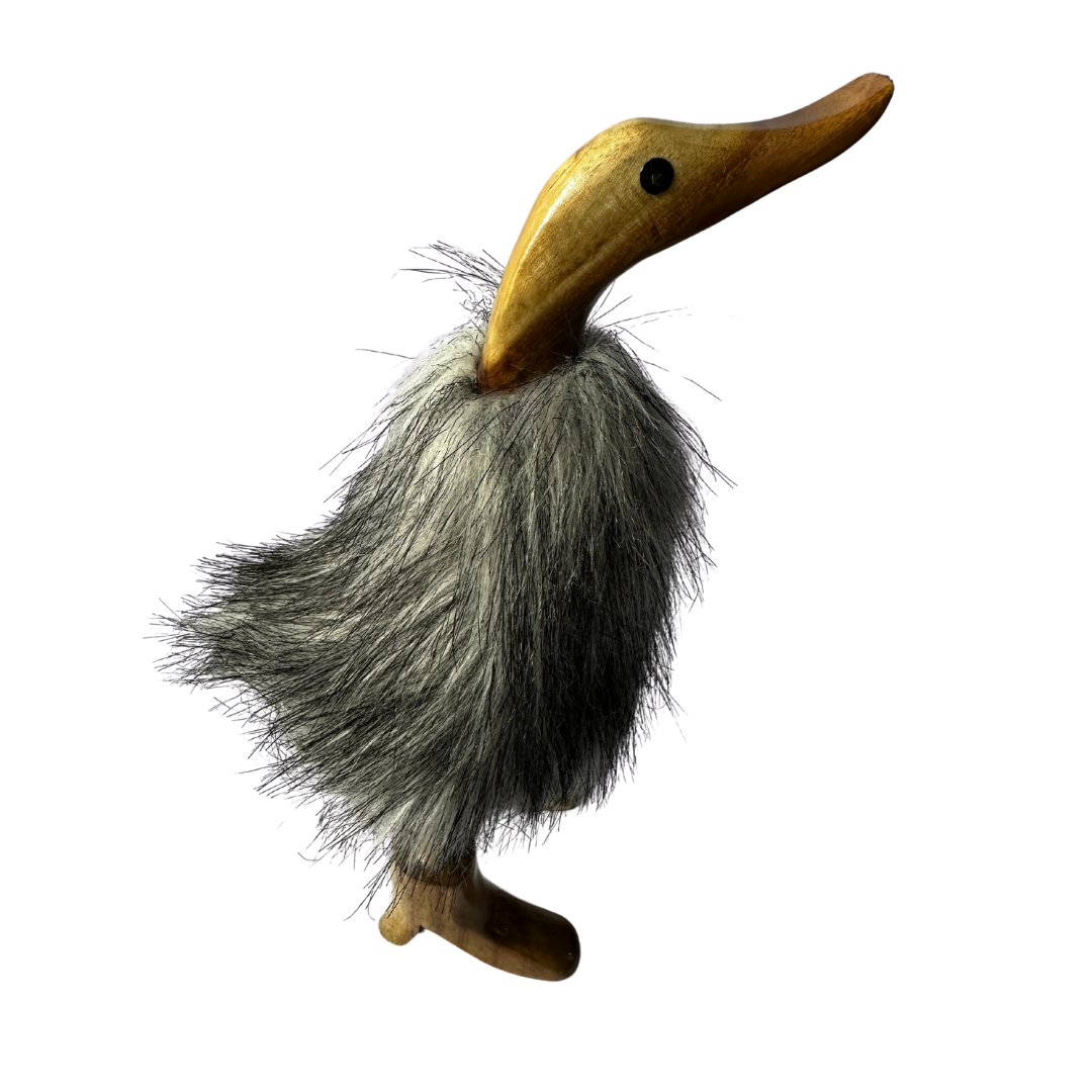 Give your space a quirky and fashionable touch with the Duck with high heels and a full grey hair coat 25 cm from Bali Homewares. This handcrafted wooden duck is dressed to impress with its soft, fluffy grey fur and elegant high heels, making it a unique statement piece. Its playful design adds a fun and stylish charm to any shelf, desk, or display area. Perfect for those who love creative, eye-catching décor, this delightful duck makes a great gift or conversation starter. Bring personality and humour into your home with this fashionable feathered friend!