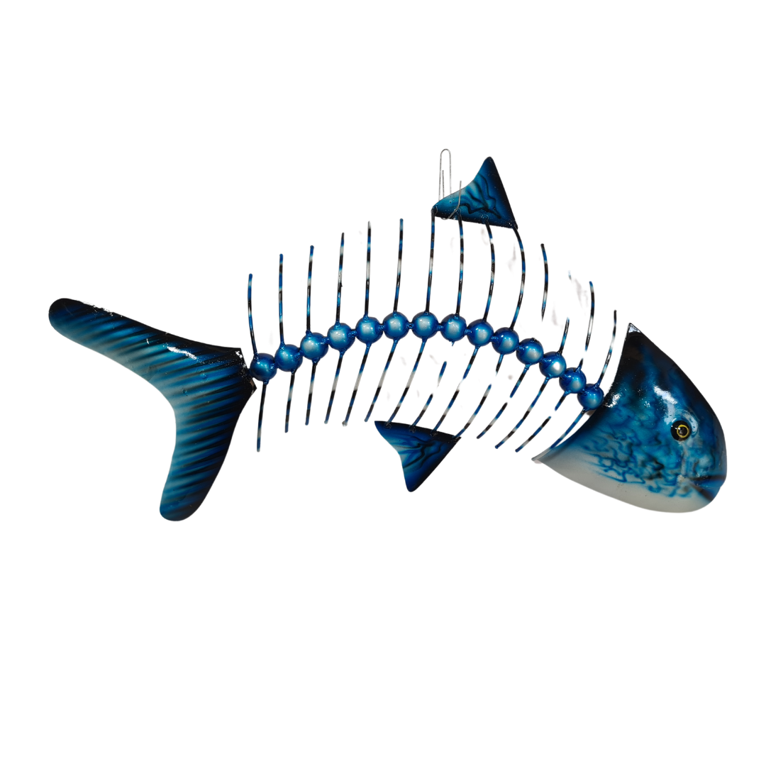 Add a bold and artistic touch to your space with the Fish Skeleton Blue wall decoration. Measuring 45 cm, this striking metal artwork features a unique skeletal fish design with a deep blue gradient finish, creating a modern and coastal-inspired aesthetic. Perfect for ocean lovers and contemporary décor enthusiasts, this handcrafted piece can be displayed in living rooms, patios, or beach-themed spaces. Whether used as a standalone statement or part of a larger wall art arrangement, this Bali Homewares creation brings a stylish and nautical charm to any setting.