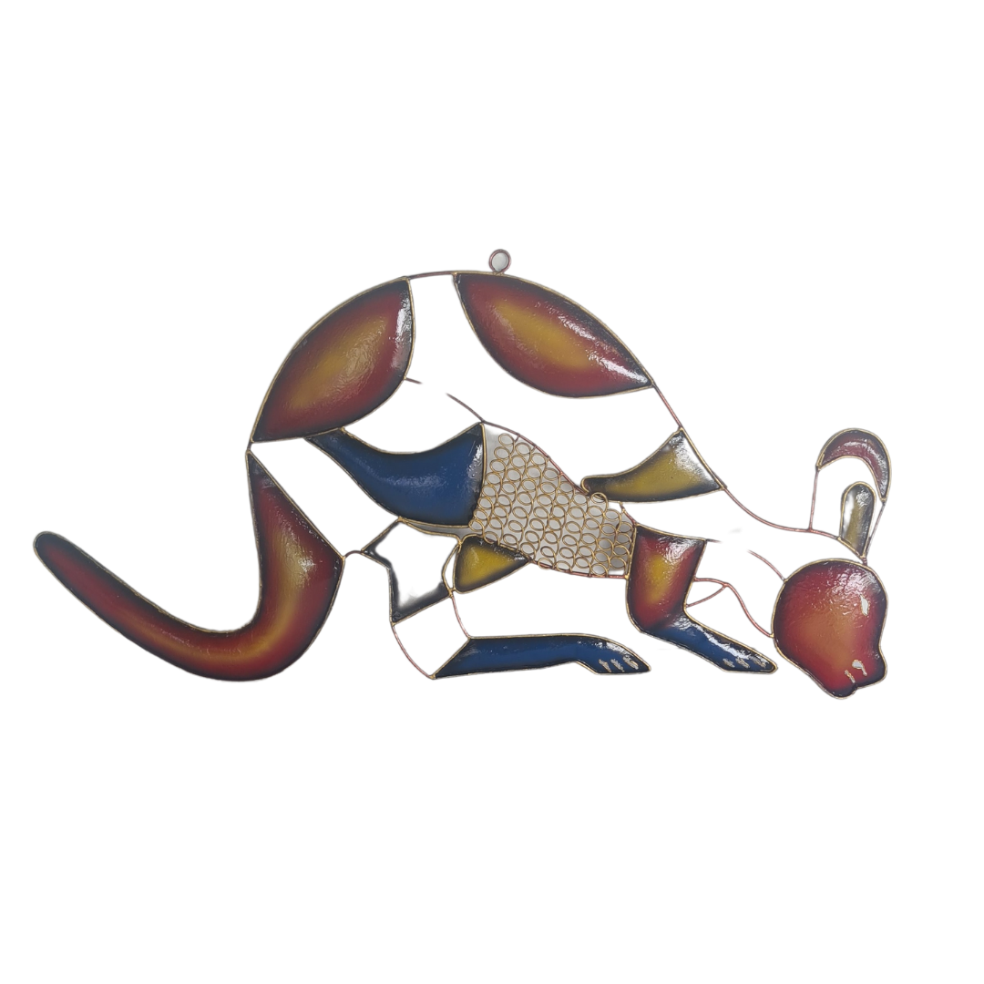 Elevate your home décor with the unique charm of our Kangaroo Figure Wall Hanging. Crafted with artistic metalwork, this stunning piece features an abstract, multi-toned design that blends earthy hues with modern elegance. The intricate cut-outs and hand-painted details make it a standout addition to any space.