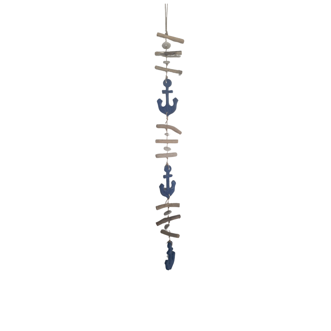 Bring the spirit of the sea into your home with the Mobile with anchor shapes. Measuring 100 cm, this handcrafted decor piece features bold navy blue anchor designs paired with natural driftwood elements. Perfect for nautical-themed spaces, beach houses, or any room that needs a touch of coastal charm, this mobile creates a relaxing and stylish ambiance. Made with love by Bali artisans, this unique piece showcases the perfect blend of tradition and creativity. Elevate your decor with this maritime-inspired treasure, exclusively at Bali Homewares.