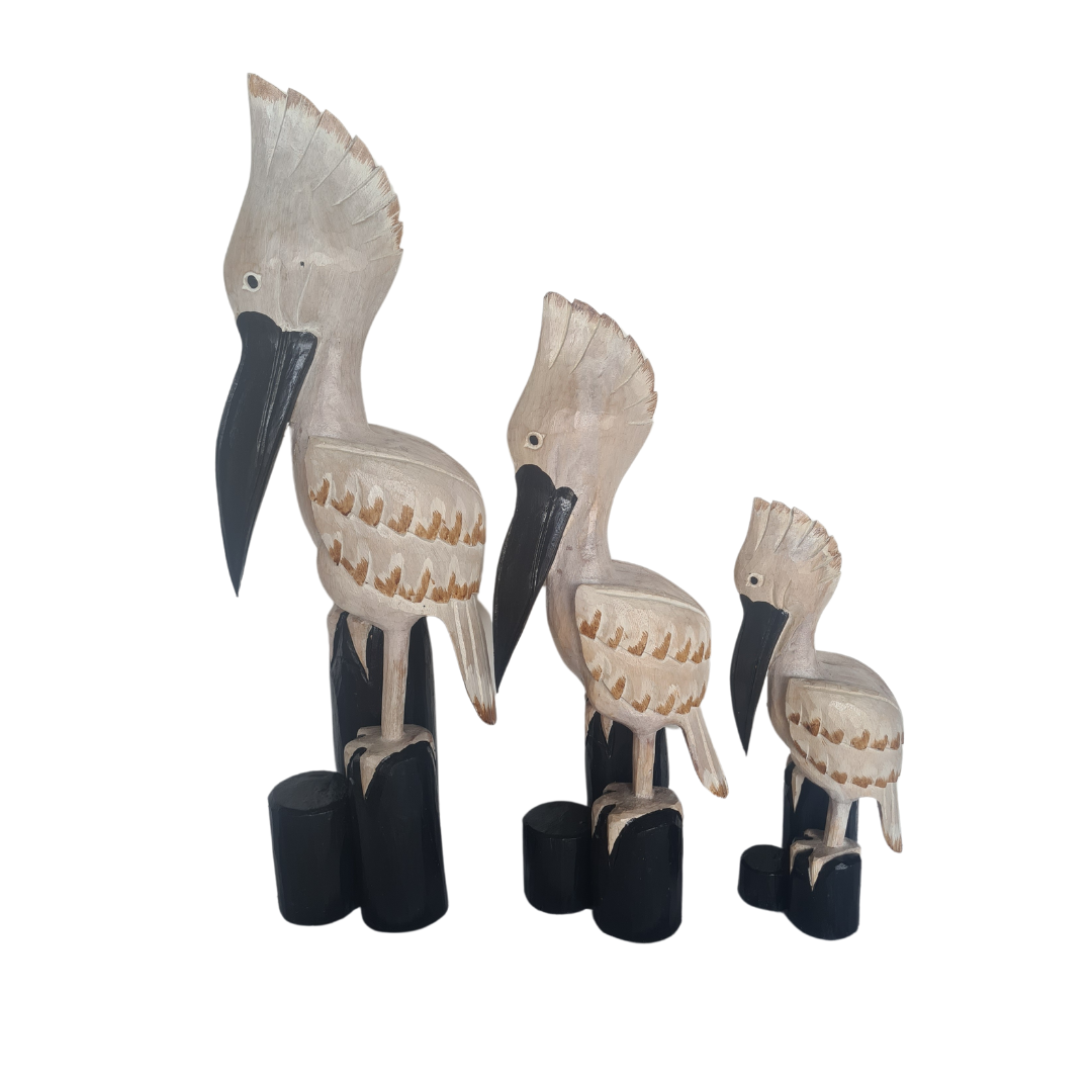 Enhance your home with the graceful charm of our Pelican as white colours with black bills set of 3 from Bali Homewares. This elegant set features three exquisitely crafted pelican figurines, each with a pristine white body and striking black bill, standing at heights of 40 cm, 60 cm, and 80 cm. Perfect for those who appreciate sophisticated and artistic decor, these ornaments add a touch of coastal elegance to any room. Whether arranged together as a harmonious set or displayed individually as unique accents, they are sure to captivate attention and admiration. Let the exceptional craftsmanship of Bali bring a sense of style to your home with this stunning set.