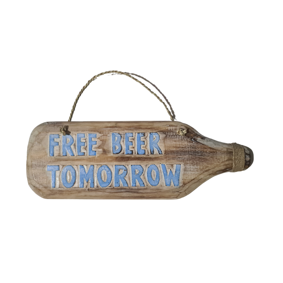 Inject humor and charm into your space with our "Free Beer Tomorrow" Sign from Bali Homewares. Measuring 30 cm, this cheeky sign is perfect for adding a playful touch to your kitchen, bar area, or any room that could use a little wit and fun. Its clever message keeps the laughter flowing and serves as a great conversation starter. Crafted with care, this sign embodies the exceptional craftsmanship of Bali, making it a delightful addition to your decor.