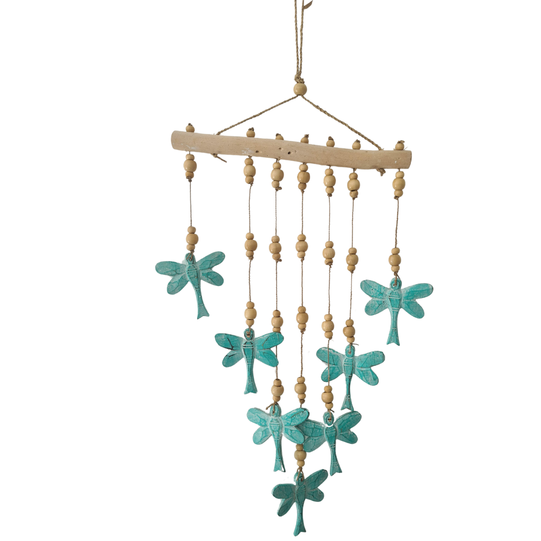 Add a touch of nature’s beauty to your space with the Wall Décor with green dragonflies. This 50 cm handcrafted piece features delicate green dragonfly accents, suspended with wooden beads from a rustic wooden rod. Perfect for creating a whimsical and calming atmosphere in living rooms, bedrooms, nurseries, or outdoor spaces, this wall decor brings the charm of nature indoors. Handcrafted by skilled Bali artisans, it’s a beautiful blend of artistry and craftsmanship. Available exclusively at Bali Homewares.