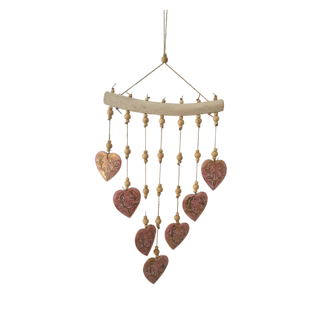 Enhance your home with a romantic and artistic touch with the Wall Décor with red and gold hearts. This 50 cm handcrafted piece features beautifully designed red hearts with gold accents, suspended from a natural wooden rod and adorned with decorative beads. Perfect for adding a cozy and warm atmosphere to bedrooms, living rooms, or even outdoor spaces, this wall hanging beautifully combines rustic elegance with love-inspired design. Handcrafted by skilled Bali artisans, it’s an eye-catching decor piece that adds both charm and sophistication. Available exclusively at Bali Homewares.